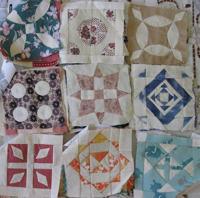 Joy was adding binding to her miniature mariners' compass quilt. She also showed us these blocks from the "Dear Jane" quilt which she started a number of years ago, but decided not to continue with:
